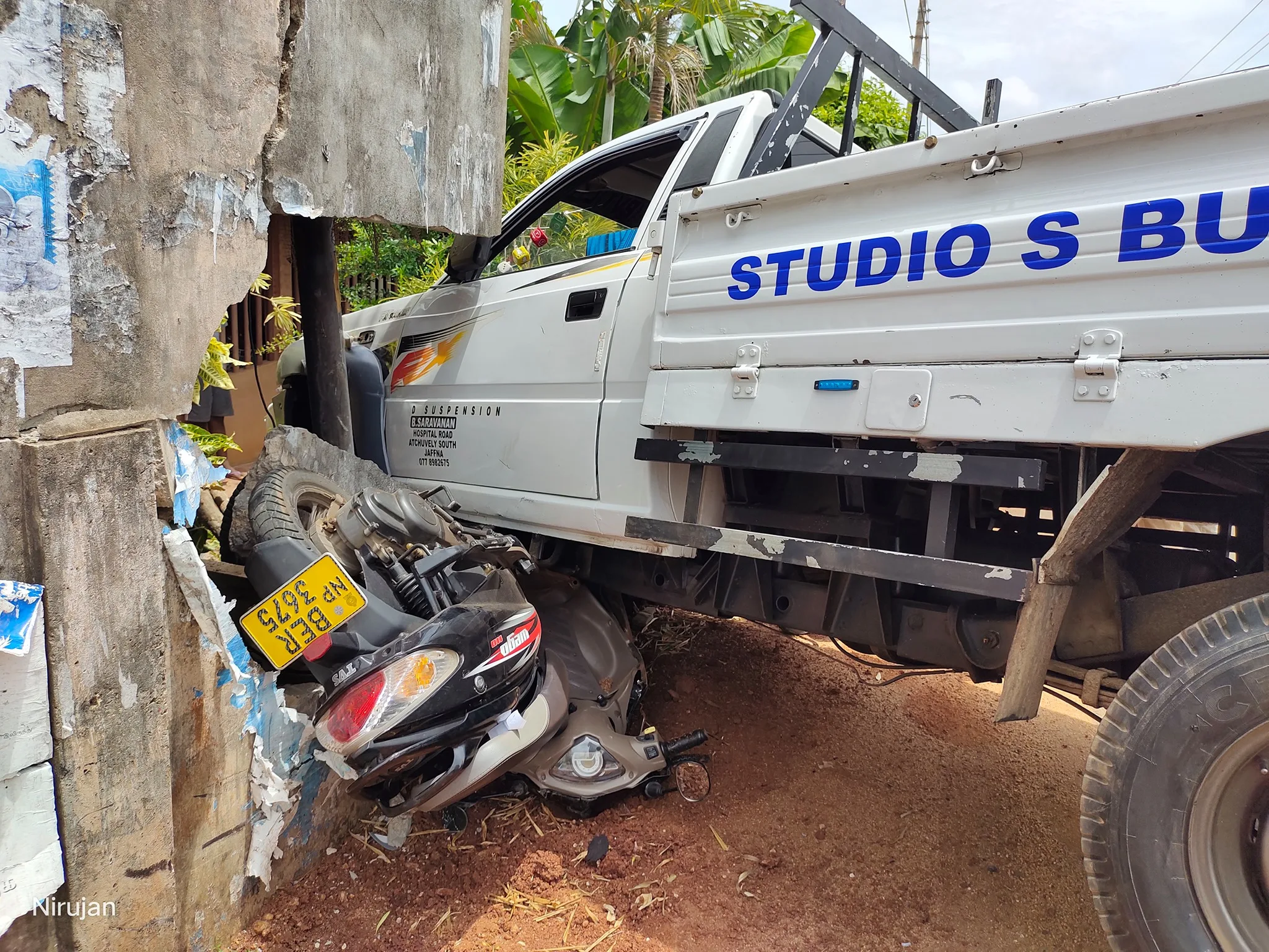 ஞானவைரவர் வீதி ஒழுங்கை ஊடாக மோட்டார் சைக்கிளில் வைத்தியசாலைக்கு சென்று வீடு திரும்பிய போது கரந்தன் -ஊரெழு பிரதான வீதியில் திடீரென ஏறியபோது எதிரே வந்த ஹன்ரர் வாகனத்தல் மோதியதால் மோட்டார் சைக்கிளில் வந்தவர்கள் கீழேவிழுந்துள்ளனர். அத்துடன் மோட்டார் சைக்கிள் ஹன்ரர் வாகனத்தின் பவரில் கொழுவியதால் இழுத்துச் சென்று அருகில் உள்ள வீட்டின் மதிலை உடைத்து பாய்ந்து விபத்துக்குள்ளானது.